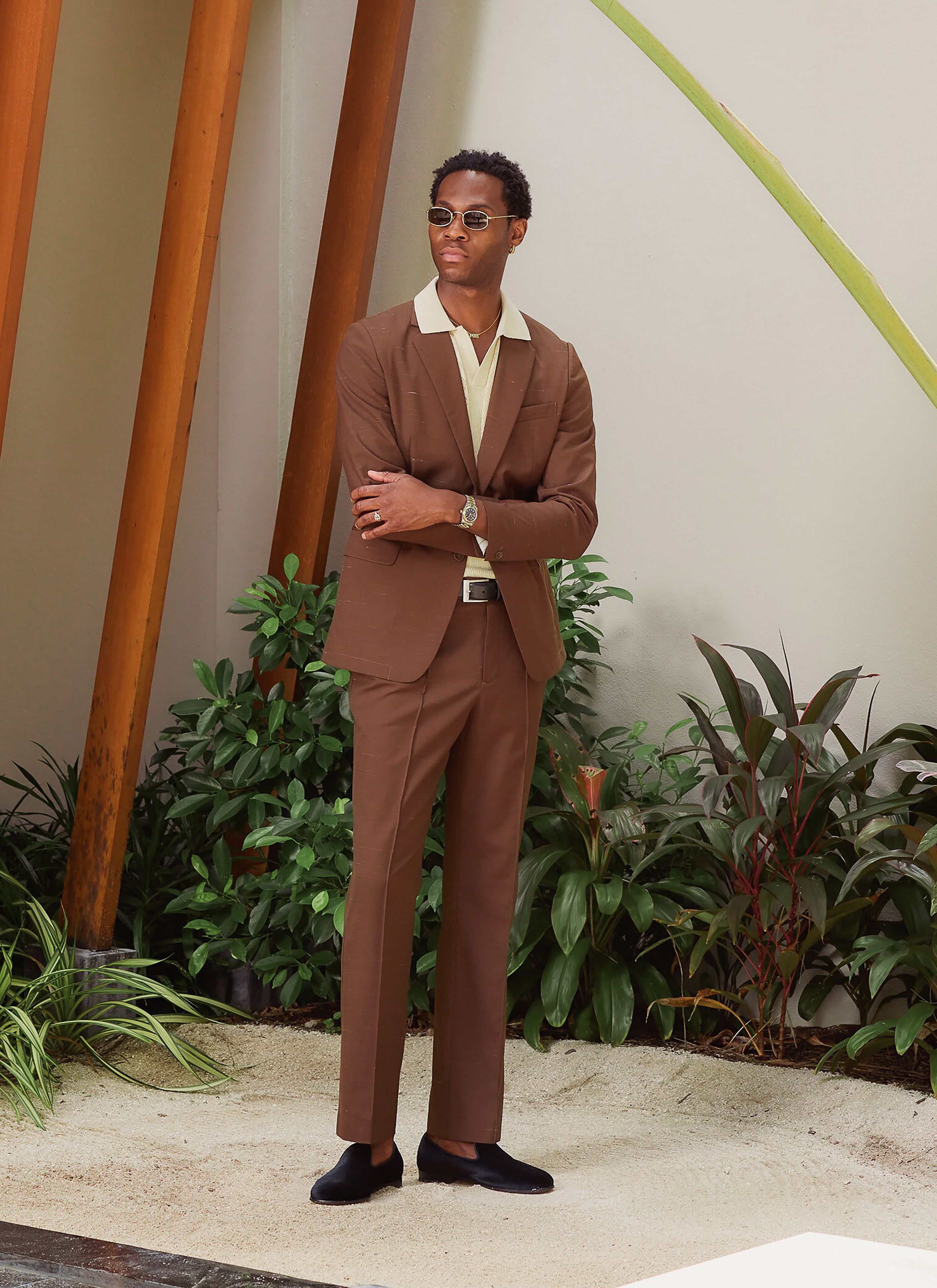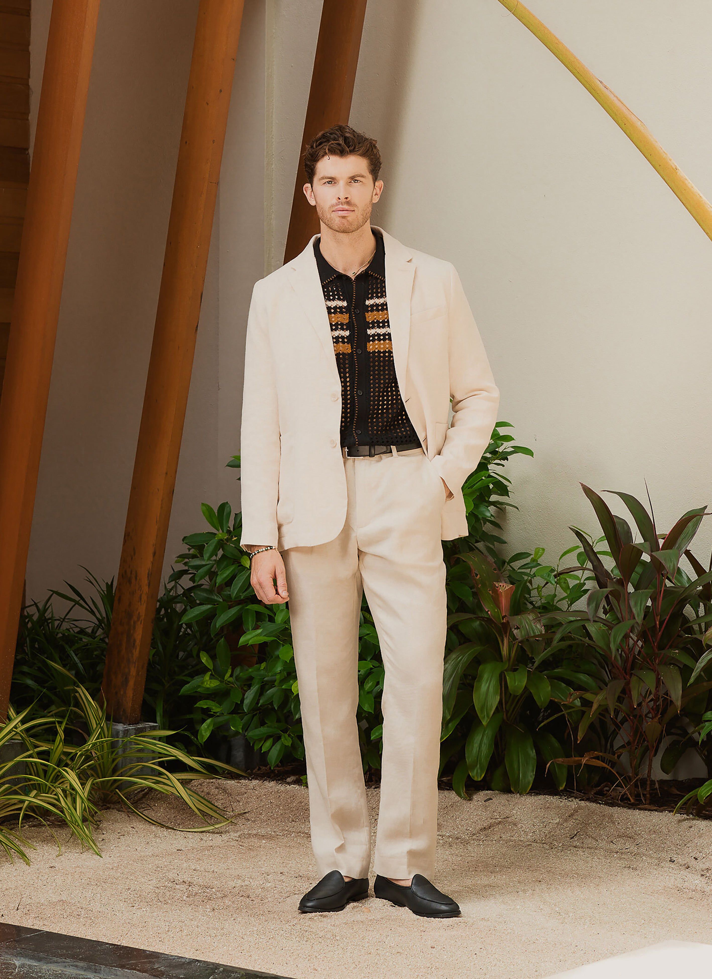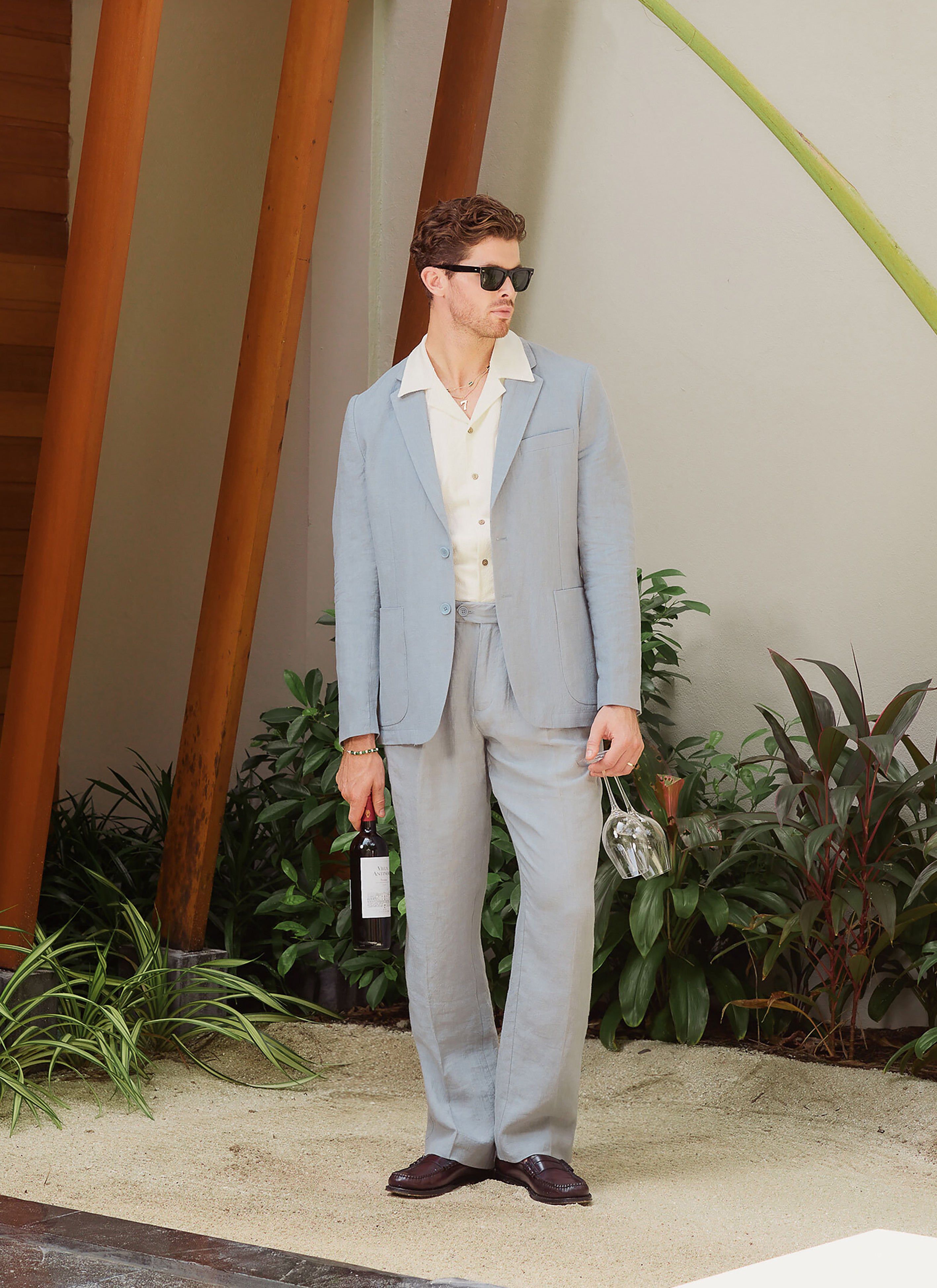 You could wear a matching co-ord short with one of our fine suit blazers for a beach wedding. For those celebrations away from the coastline, we recommend suit trousers, linen, wool, smart, casual options with matching blazer but please, suit yourself.