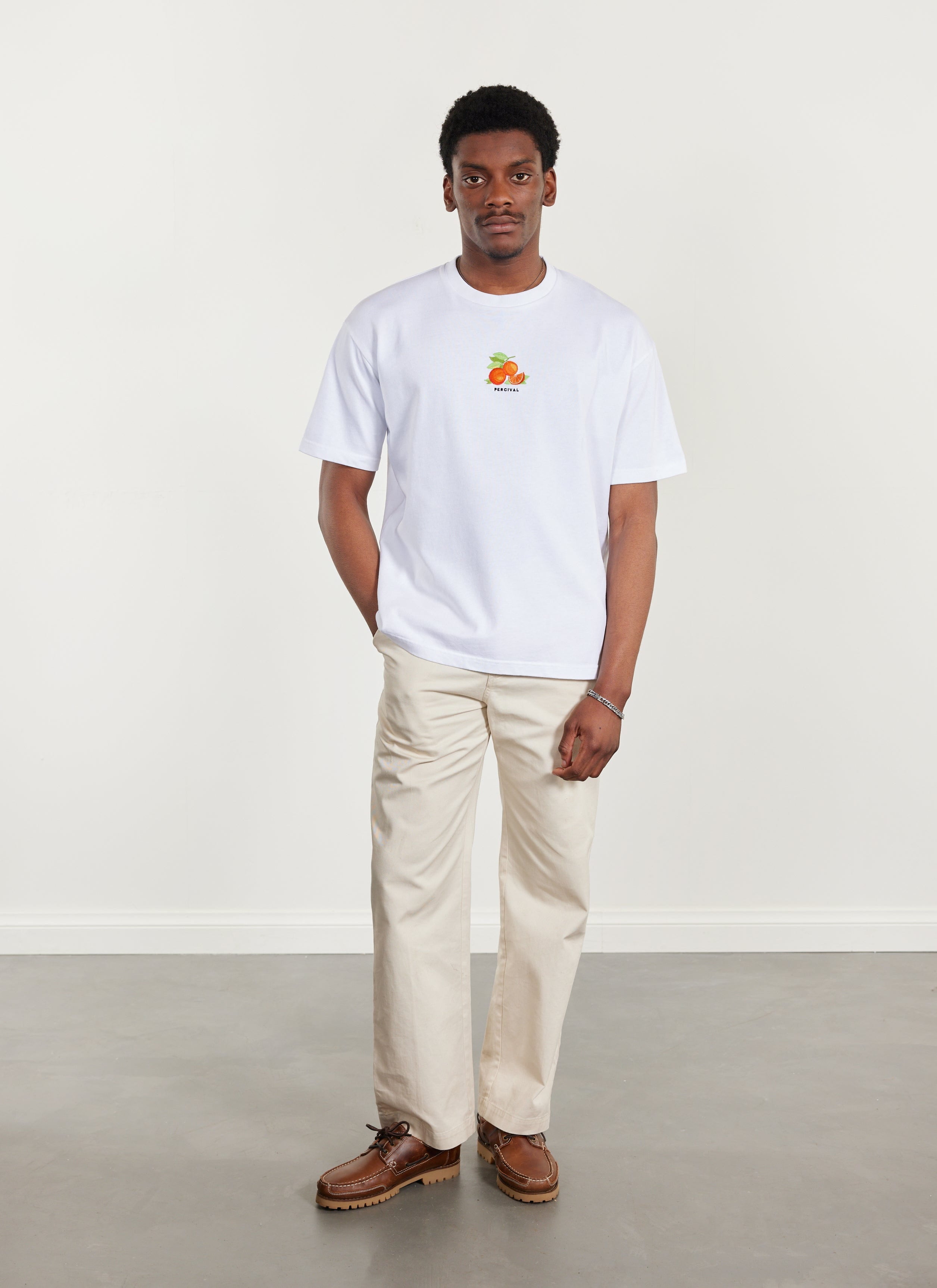 - Features: Men's Heavyweight T Shirt made from 100% organic cotton. In a boxy fit and finished with citrus embroidery, this Oversized T Shirt is a wardrobe staple for every man.