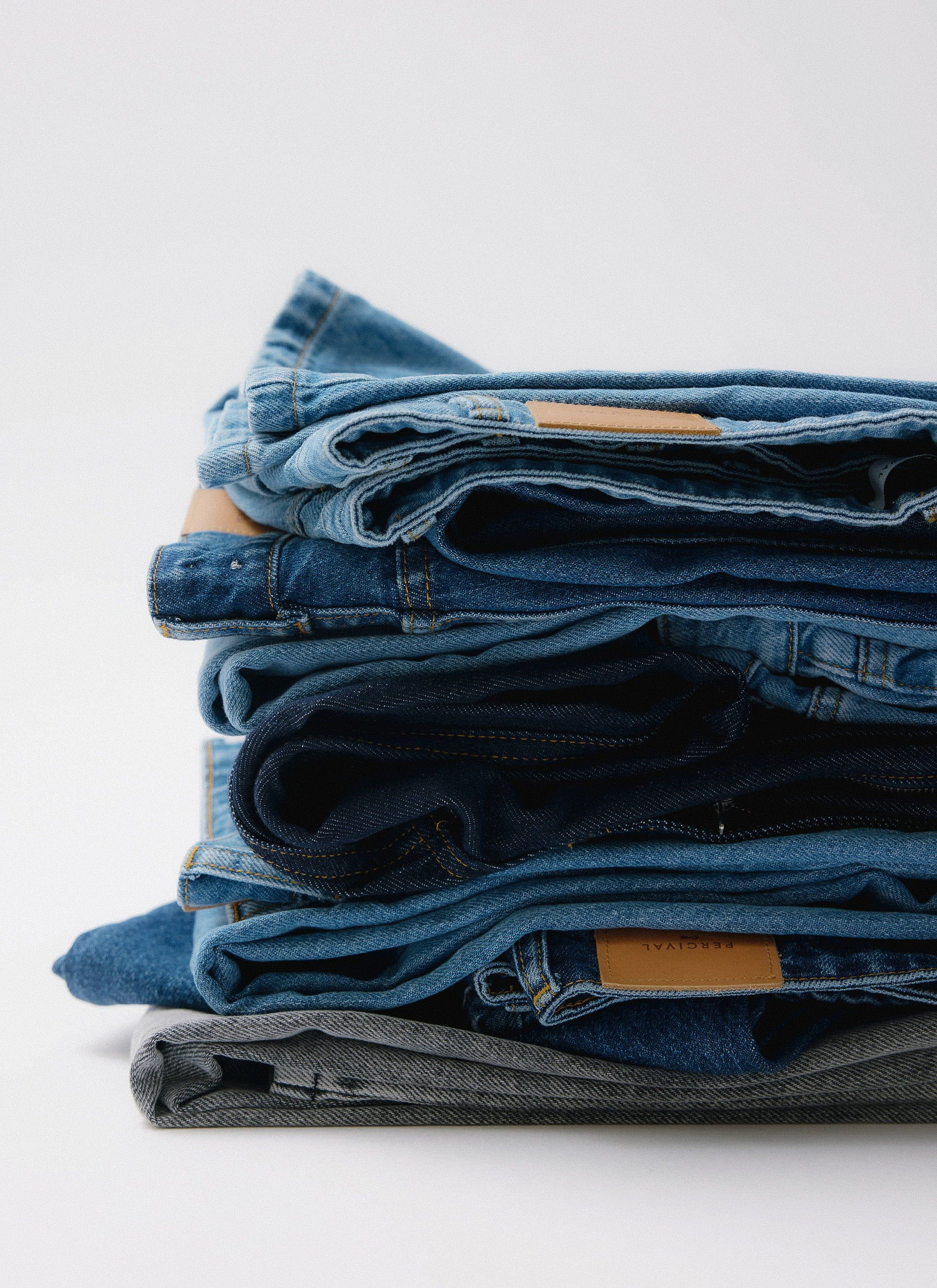 Percival denim is sourced from certified producers. Made from organic cotton, grown without the use of synthetic pesticides and regenerative cotton, which preserves soil health and biodiversity. The denim mill recycles treated water and also collects and reuse pre and post consumer yarns in production.