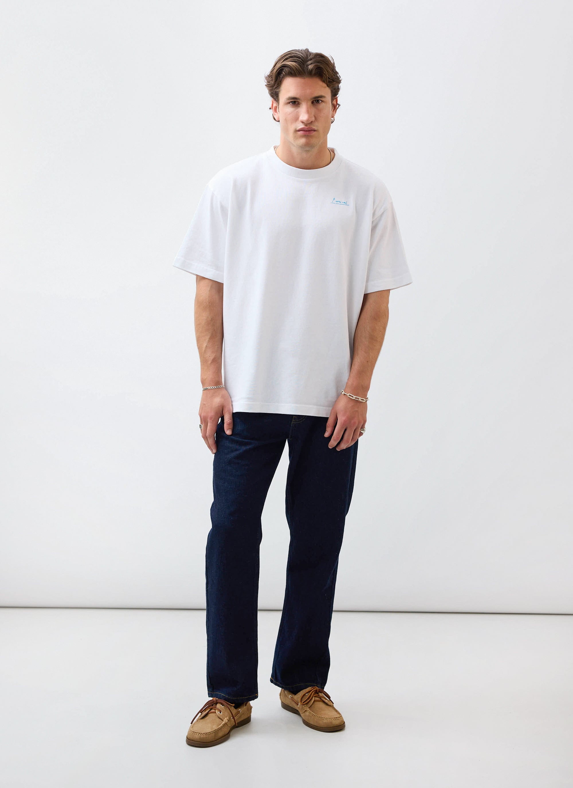 - Features: Men's white t shirt with a heavyweight, oversized fit. Made from organic cotton for comfort and durability. Designed with a ribbed neck, this men's short sleeve graphic tee is perfect for everyday wear and stands as a staple for every occasion.