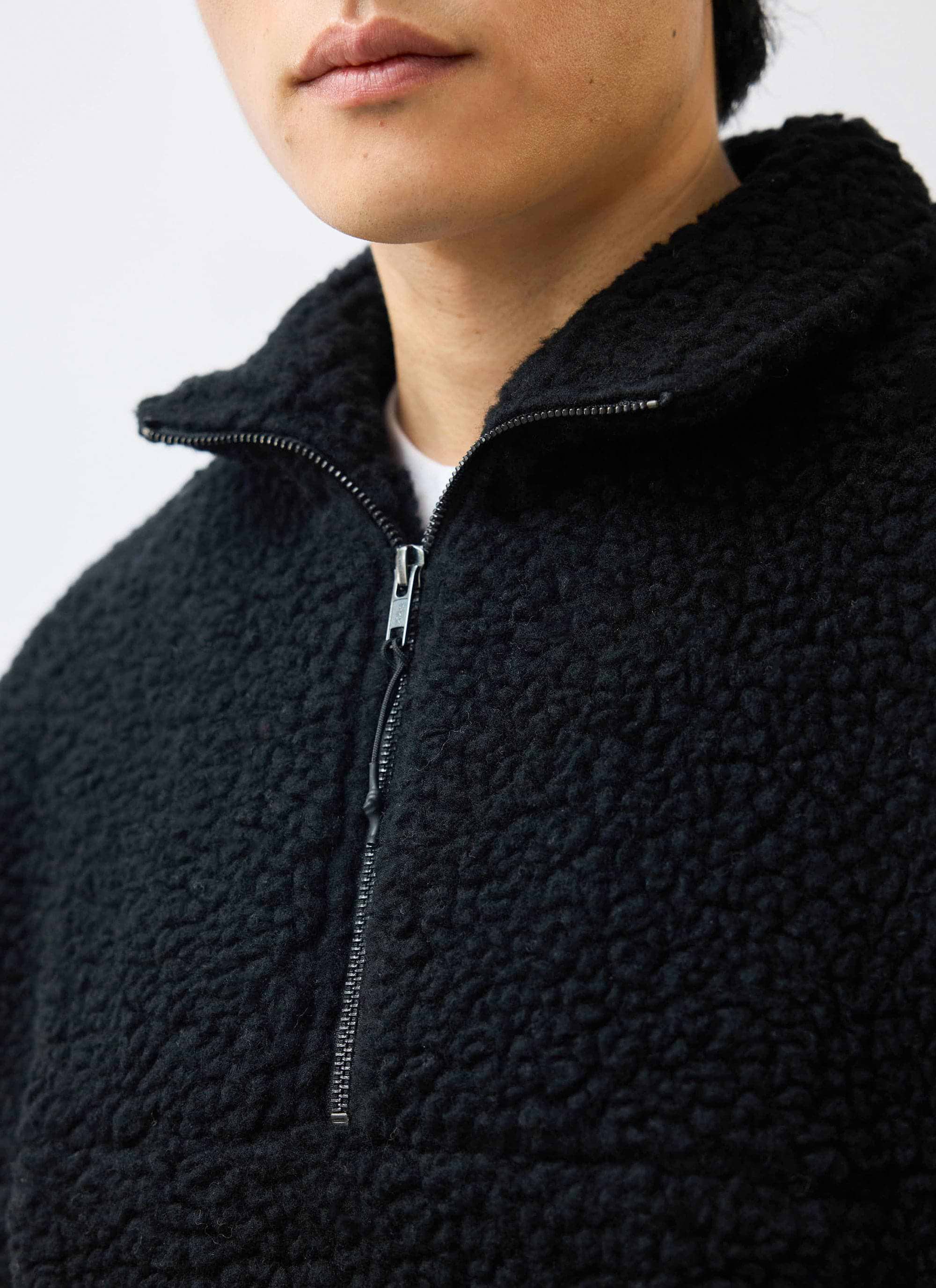 Depends on the quarter-zip, depends on the fit, depends on you. If you’re going casual, maybe leave the collar popped like a devil-may-care son of a gun, especially if your quarter-zip is made of a material on the stiffer end of the flaccidity scale. If you’re going for a smarter fit, leave the zip open and fold that collar down to expose your base layer. This look can work wonders for a man in a bind. Our Men’s Quarter Zip Wool Fleece Pullover looks superb folded down, for example.