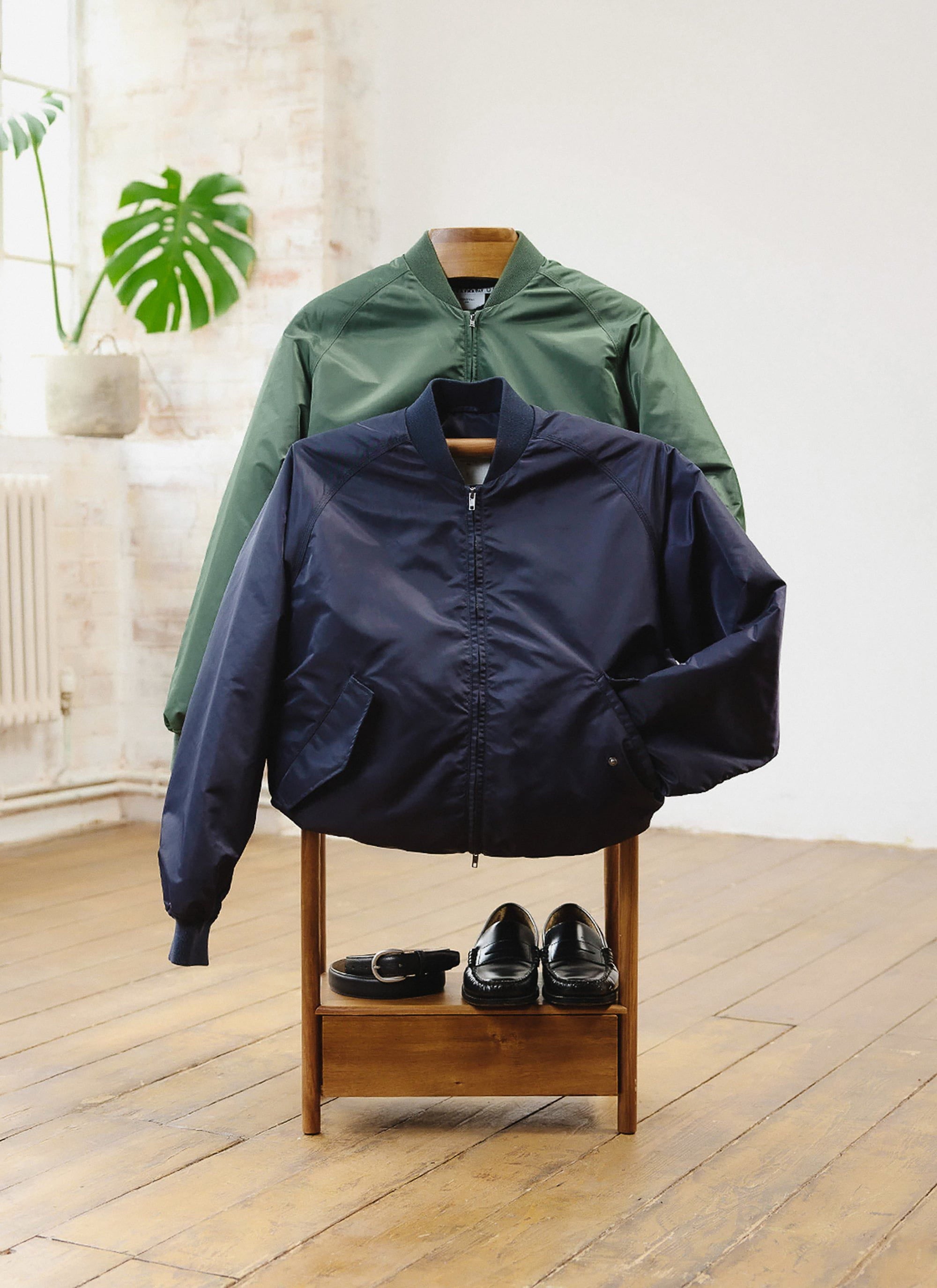 Nylon bomber jackets are ultra-lightweight and easy to wear, yet give the smart and clean silhouette of a much heavier duty fabric.