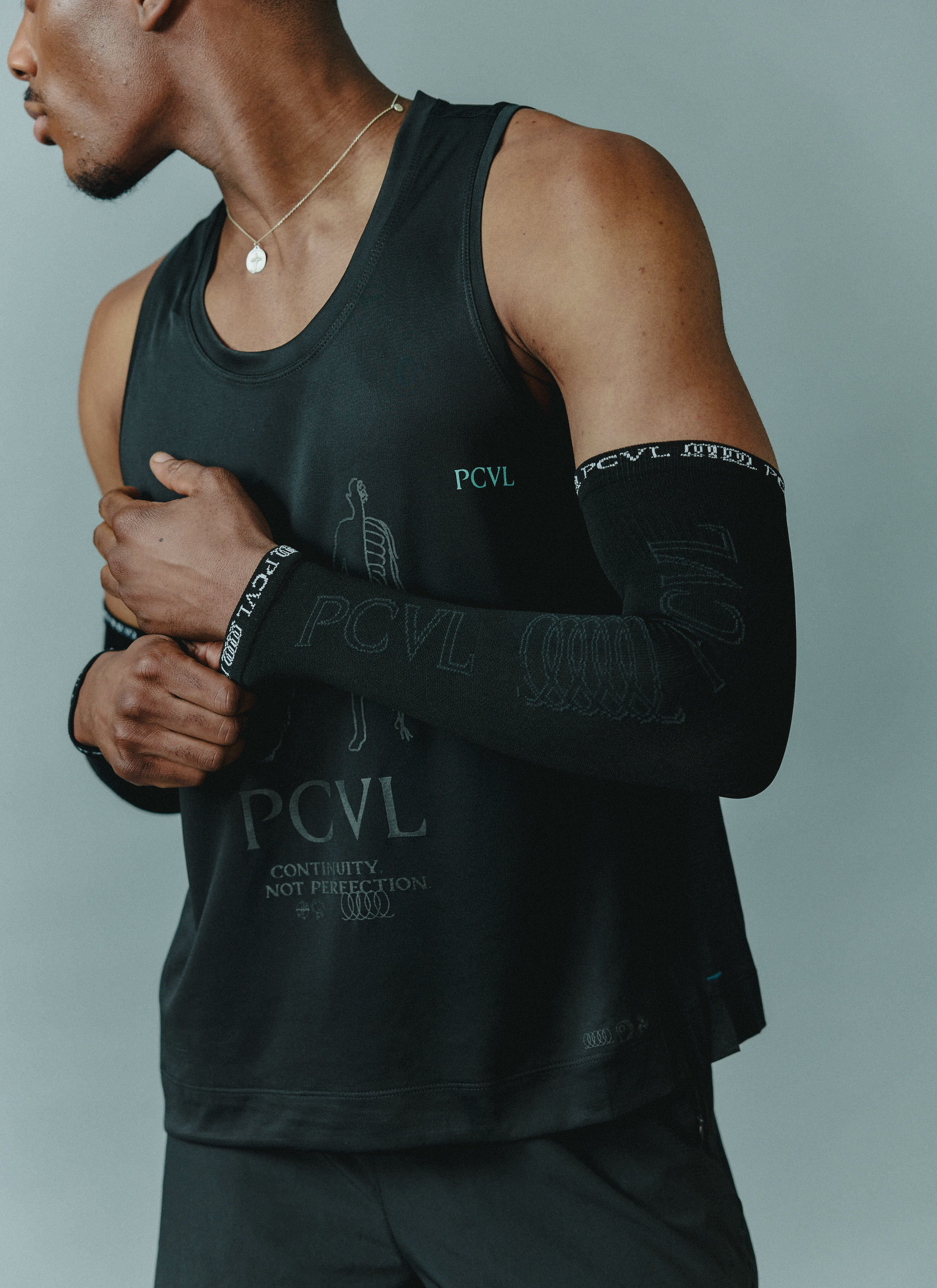 Here’s where you’ve got a bit more room to experiment. A Long Sleeve Performance Top is perfect for the gym. Understated and cool but with all the perks of its short-sleeved brother, it stands out against the wallpaper of muscle vests and too-much-testosterone. Embroidered socks are fine at the gym, too—you can afford to show a little personality around your ankles whilst you’re swinging kettle bells. Keep your PCVL Water Bottle close by too, hydration is key.
