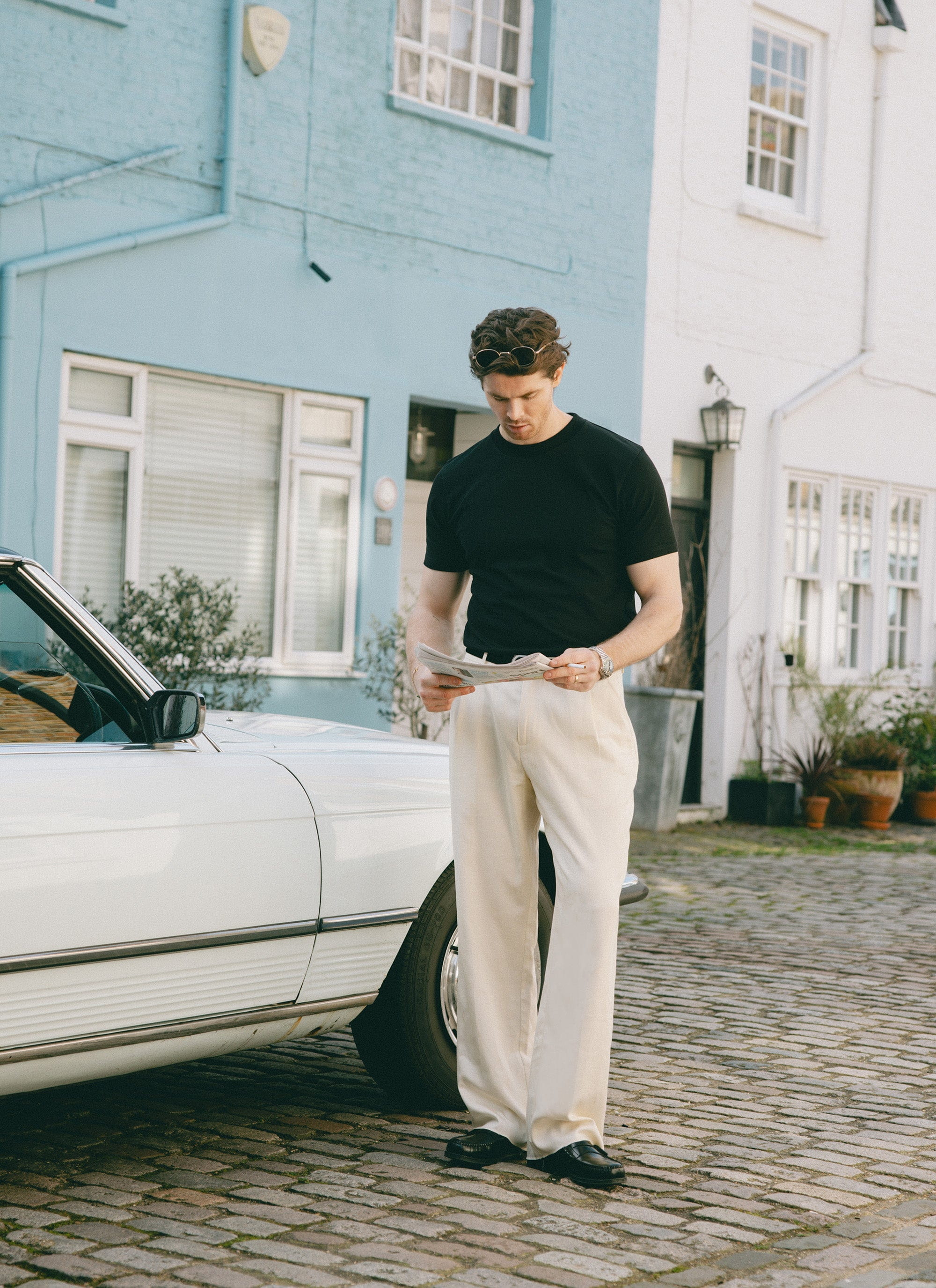 The Everyday Heavyweight Tee. Not all heroes wear capes. Some just wear a really good white T-shirt. This one’s made in Portugal from 100% organic cotton — thick, soft, and built to last. It’s got a regular fit, no logos, no fuss, just clean lines and heavyweight jersey. Great under things, great on its own, great when you don’t want to think too hard. A blank canvas for your daily masterpieces (or your coffee shop runs).