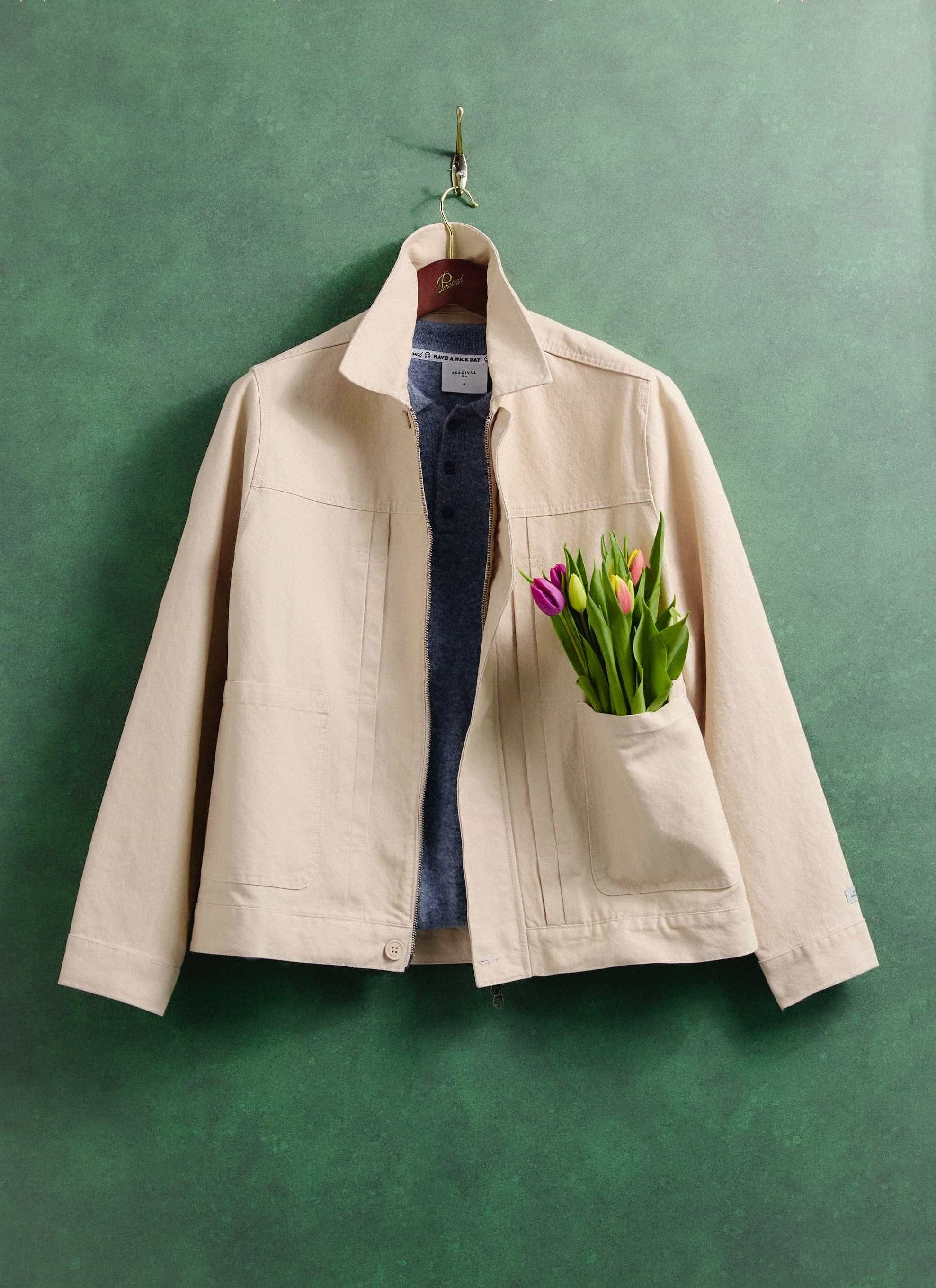A clean, modern cut made for smart layering gets you from desk to dusk. Throw it ontop of Percival knitwear, a shirt or tee, cut in a clean boxy fit, minimal lines do the talking. Double pleated front, taken from the original denim jacket, the Type 1, we've added a storm flap, two patch pockets, internal pocket, it is the full package. Crafted in a cotton-rich blend and a touch of stretch for comfort. Ecru pairs with anything.