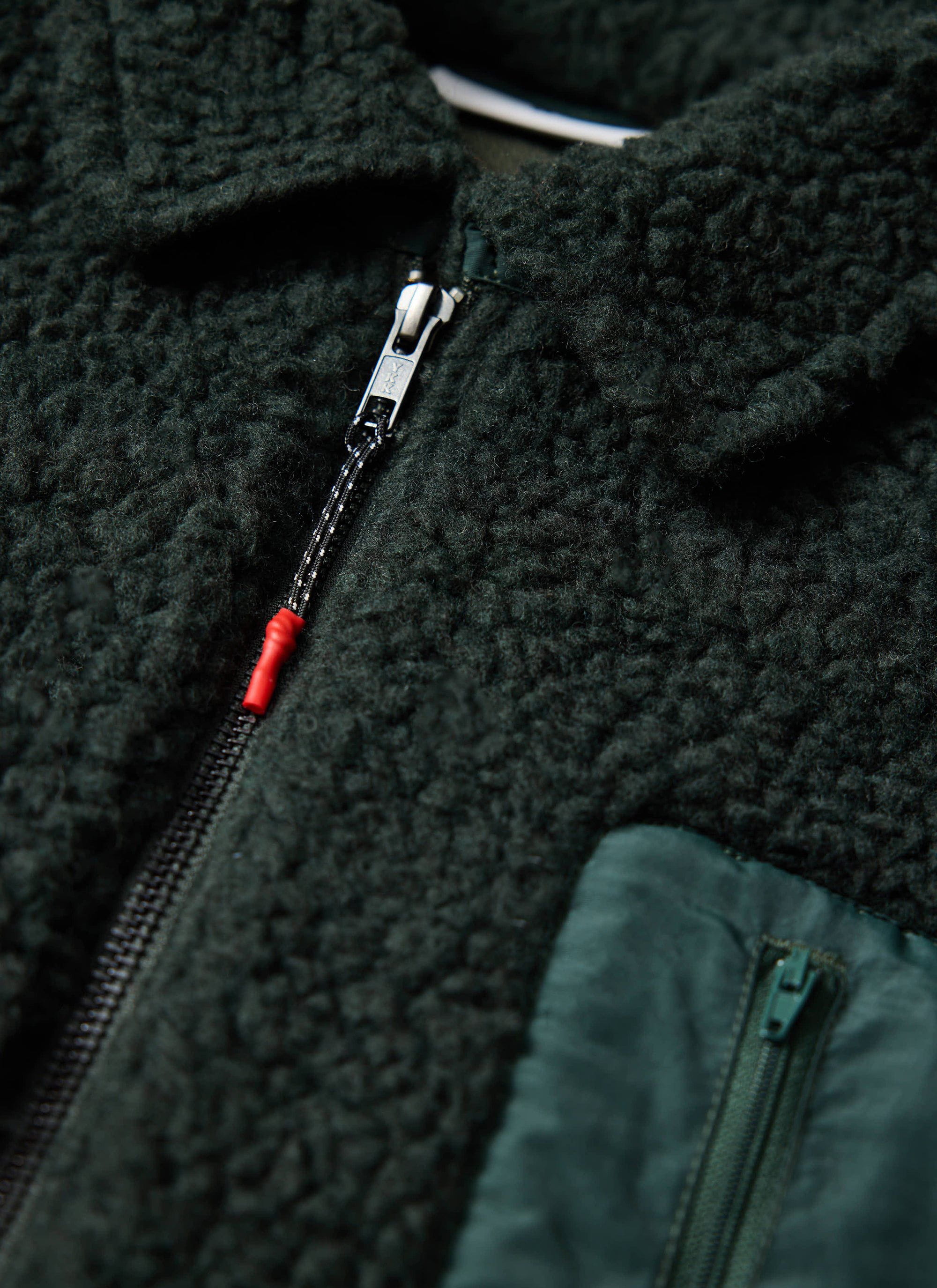 - Features: Men’s full zip fleece jacket in green. Handmade from a premium wool blend with a breathable airtex lining. Designed with a two way zip, internal storage pockets, coloured trim accents, and elasticated hem pullers for an adjustable fit. This green fleece jacket is ideal for colder days and layering.