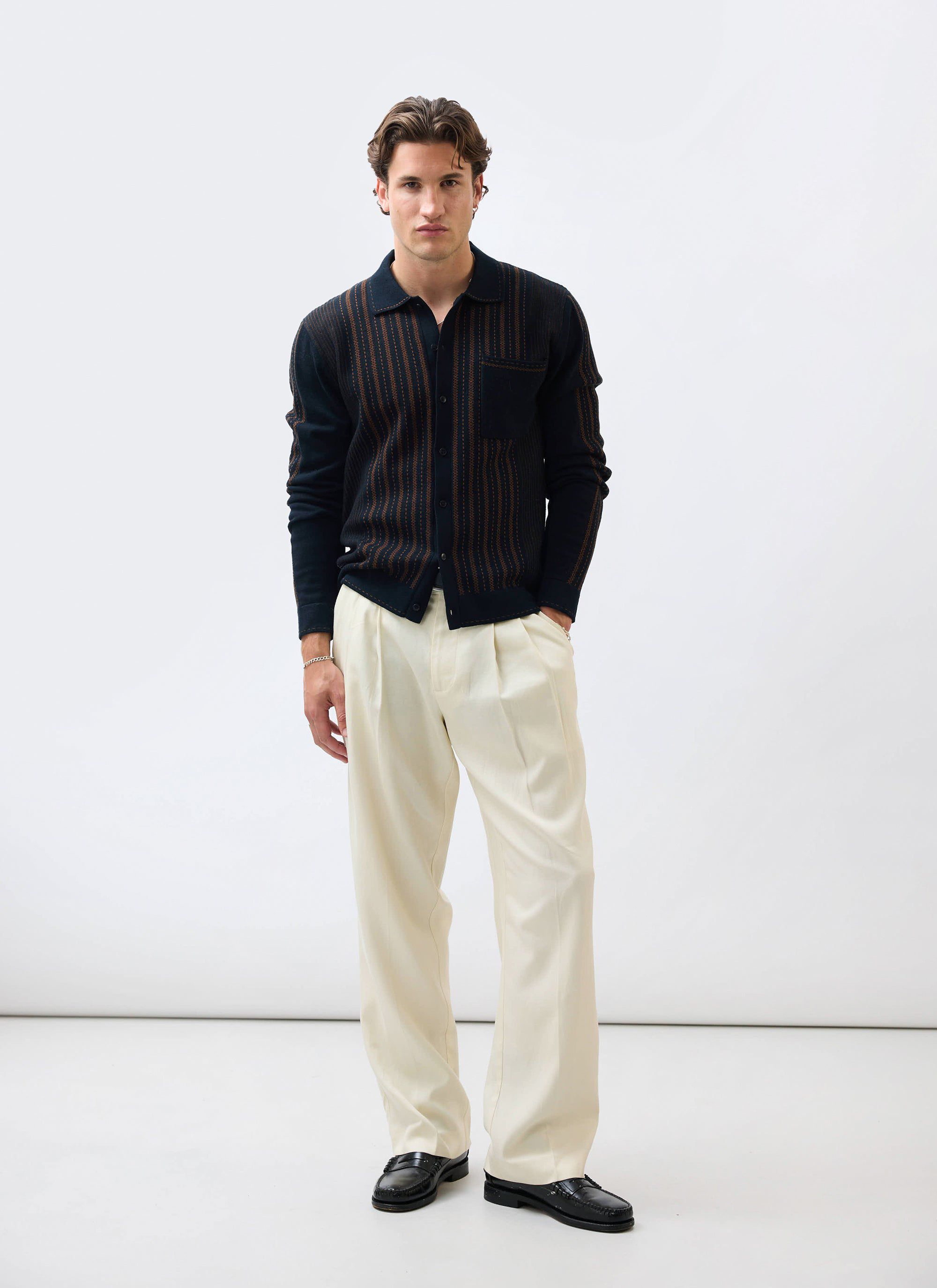 Appendix. I’ve had mine out - a sore bastard of a thing. This, however, isn’t based on that good-for-nothing body part, but rather on a quality piece of knit kit: a jacquard knit design inspired by book spines. A long-sleeve polo meets cardigan, it pairs well with almost anything. Perfect for layering season.