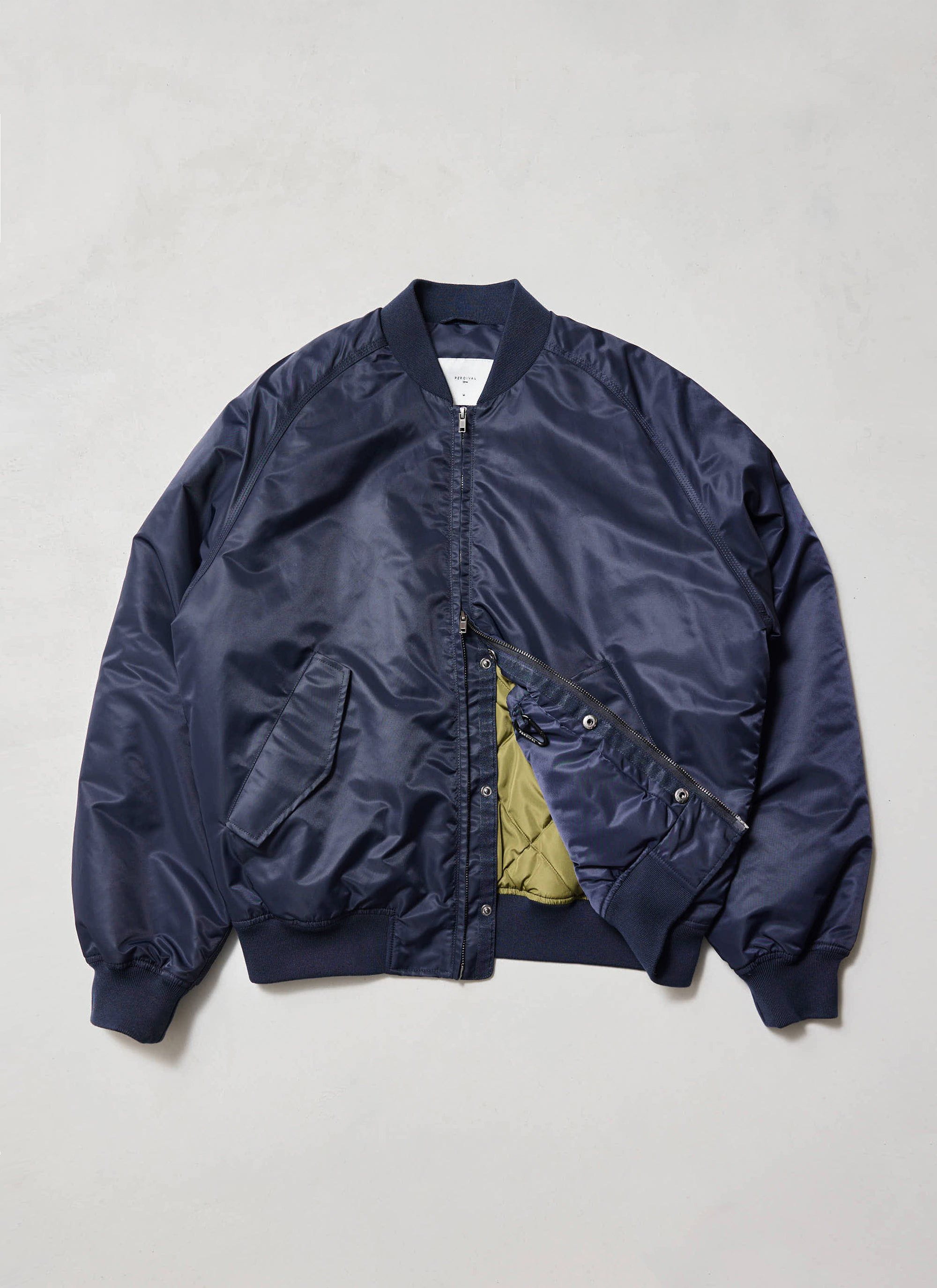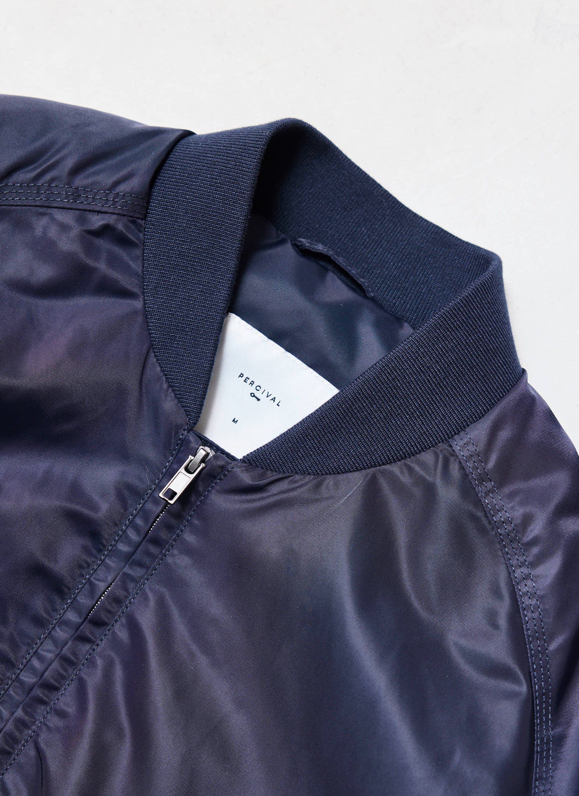 The Percival Bomber Jacket... a perfected fit, the fabric; sourced near and far, we’ve toiled over toiles. Would almost challenge you to find a better bomber jacket. Accept the challenge. Heavy weight nylon fabric with contrast wadded lining, internal pockets to store all your mentionables. We do the hard wardrobe work for you, pair with any Percival pieces.