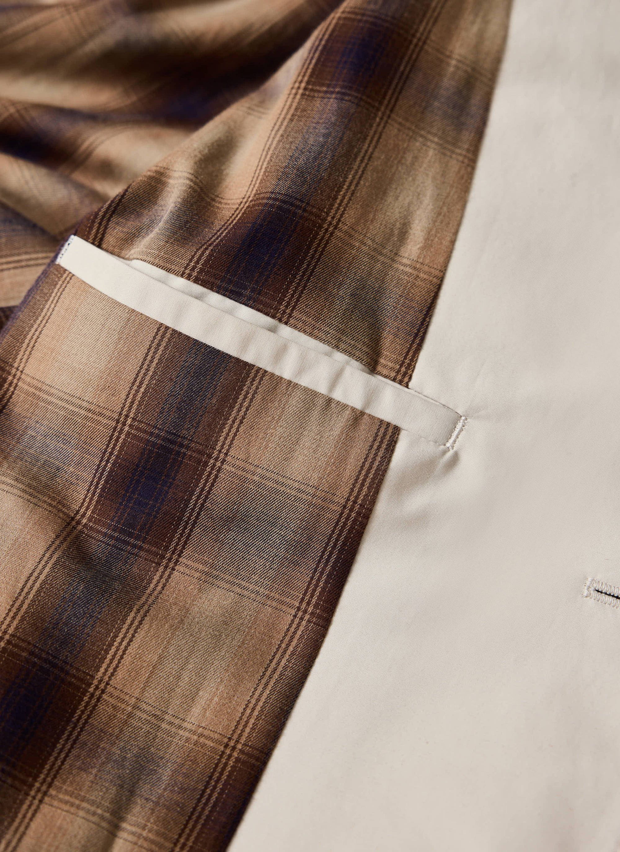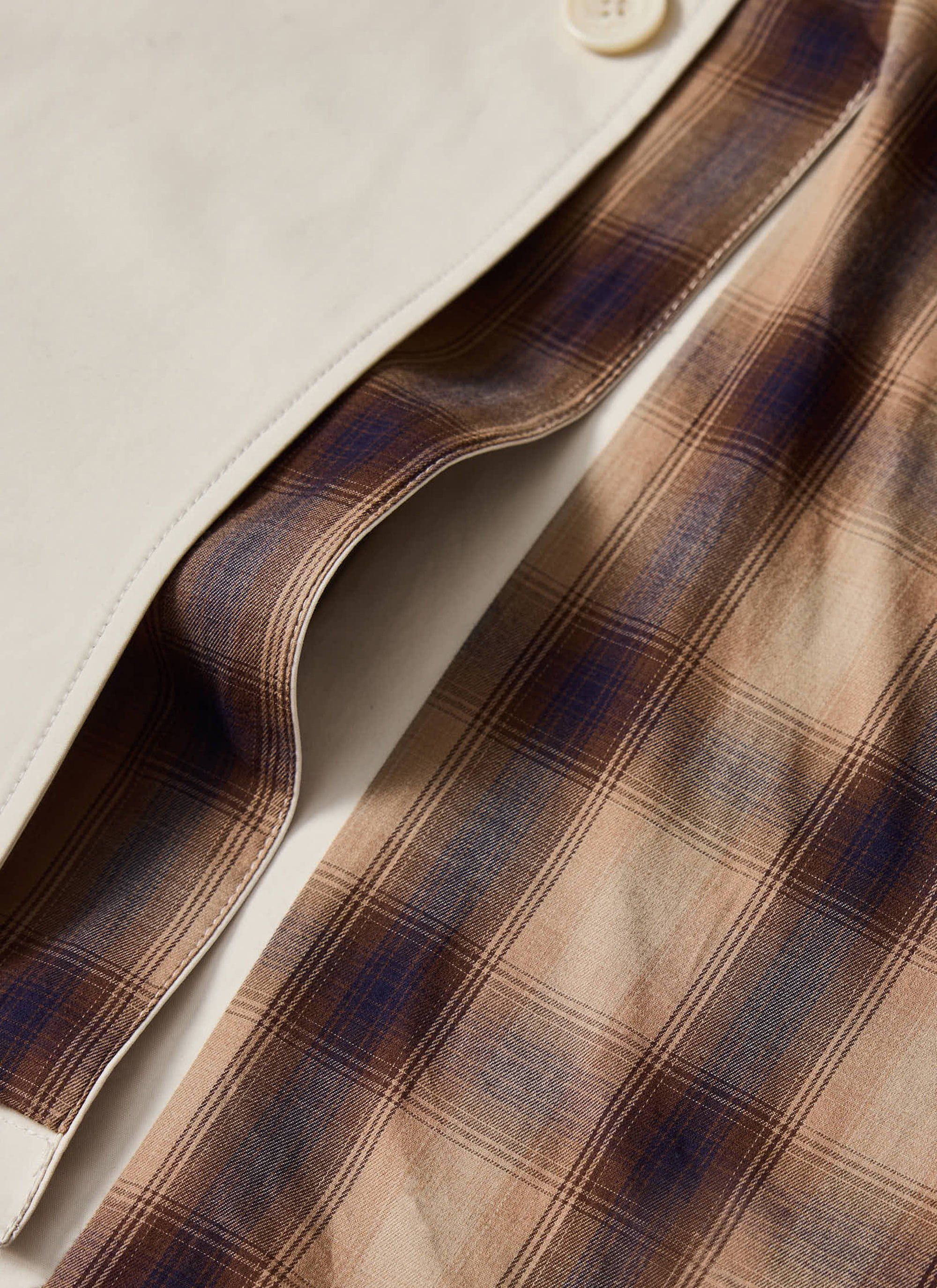 The coat of arms, no the coat of coats, the GOAT coats. Perfect autumnal winter layering piece, throw it on - on the way out the door. This men’s trench coat in cream is a simple classic that elevate your every damn day. Contrast cord collar, yarn dye check lining. Made in limited quantities.