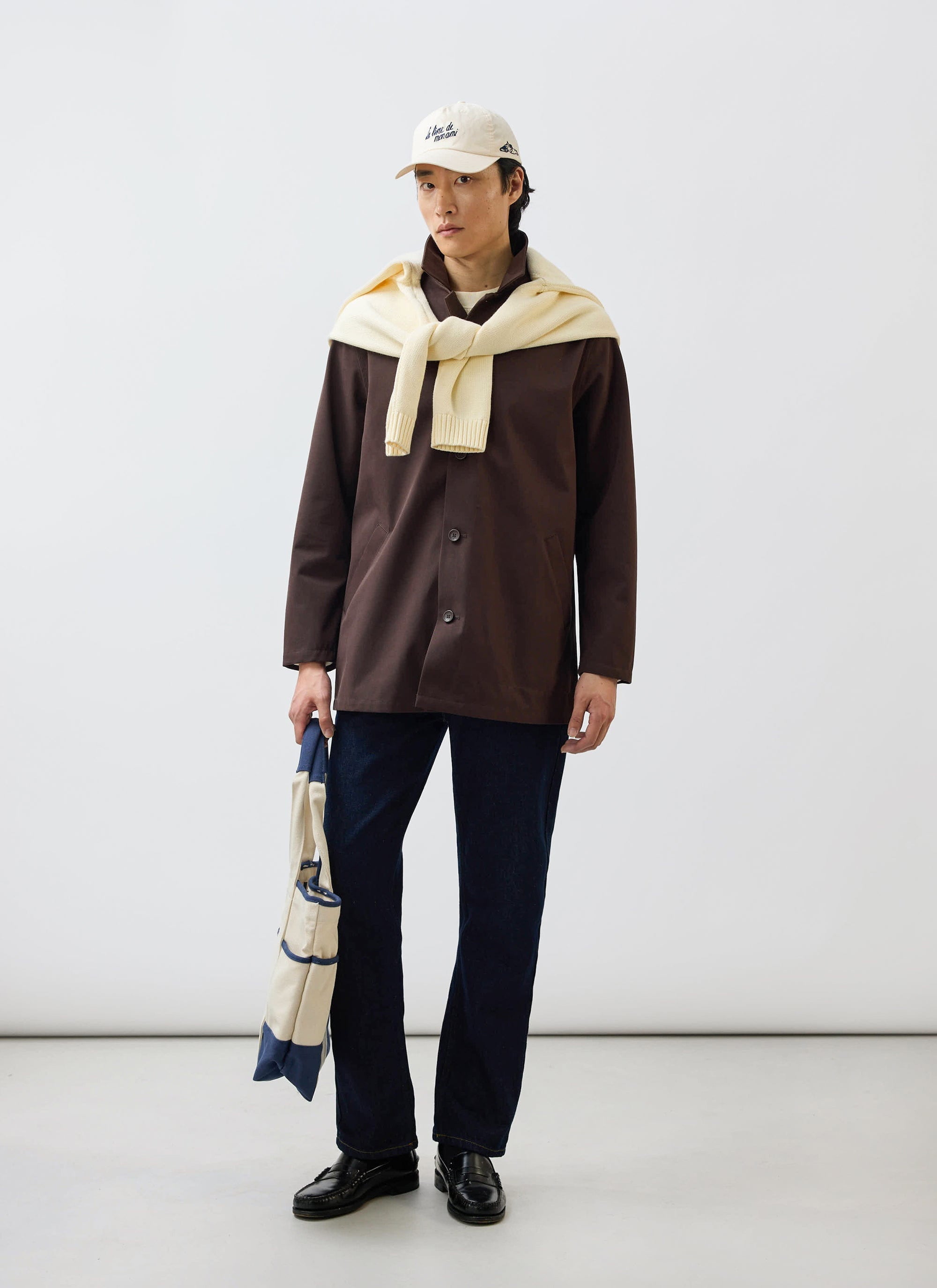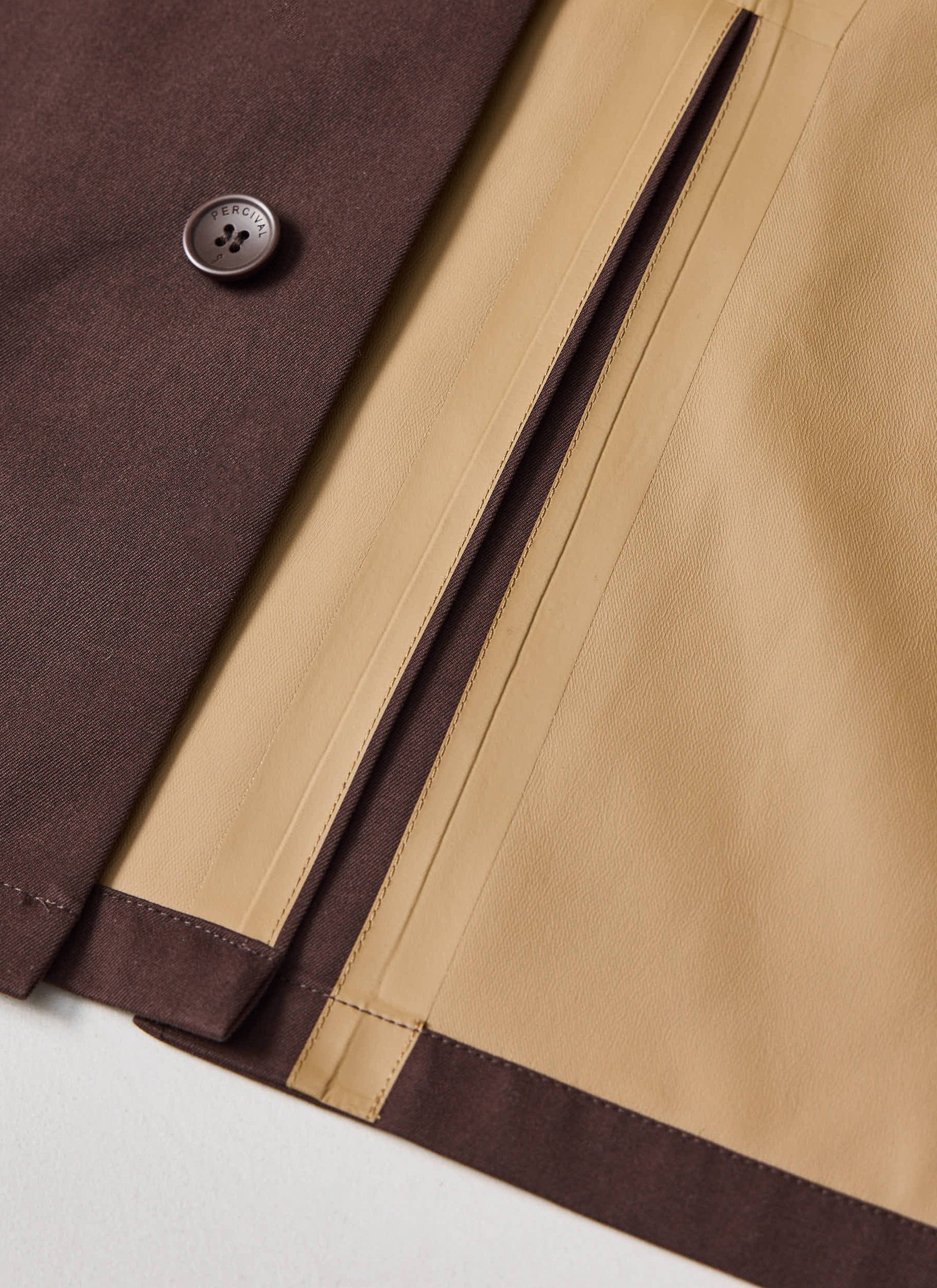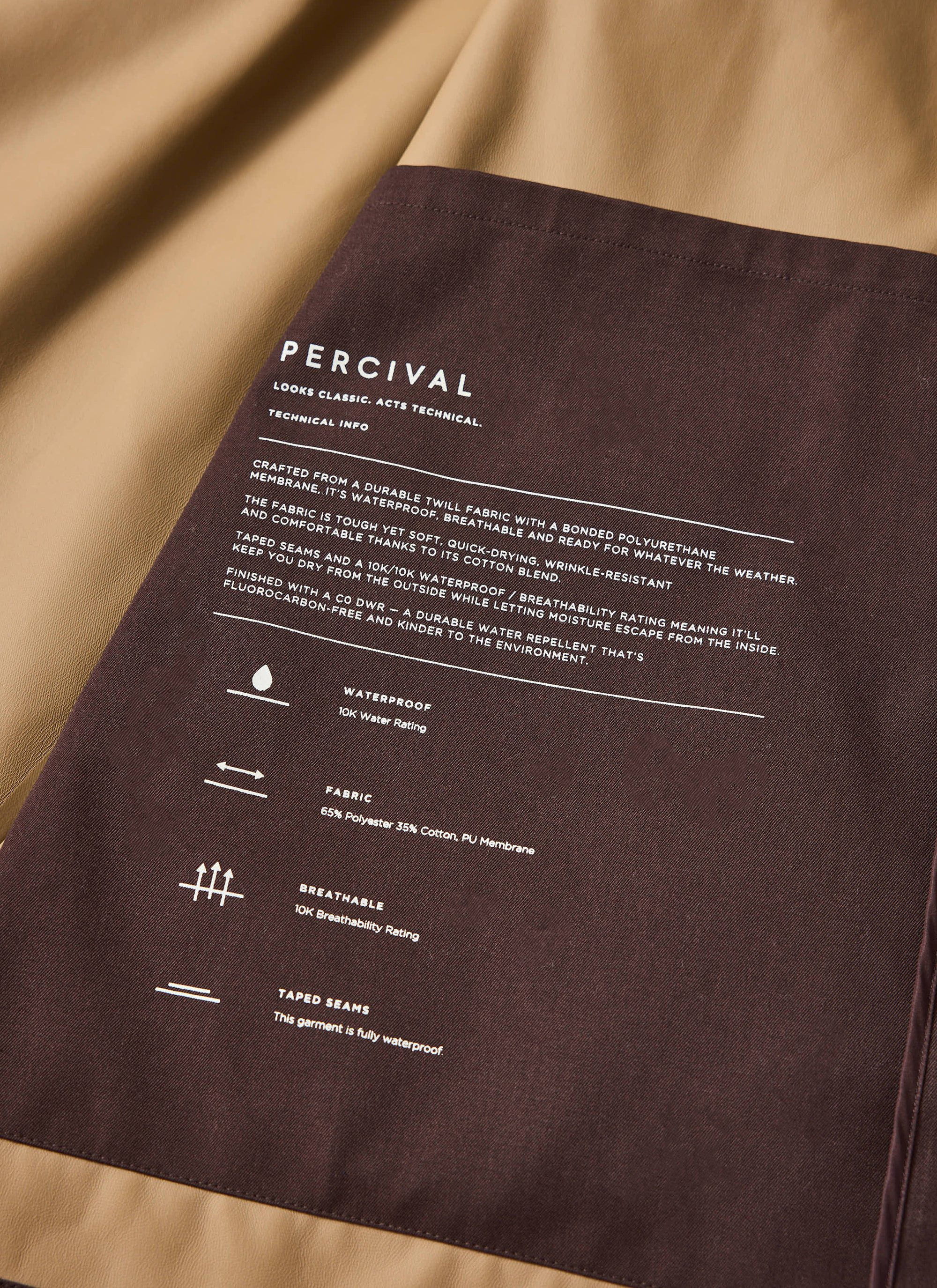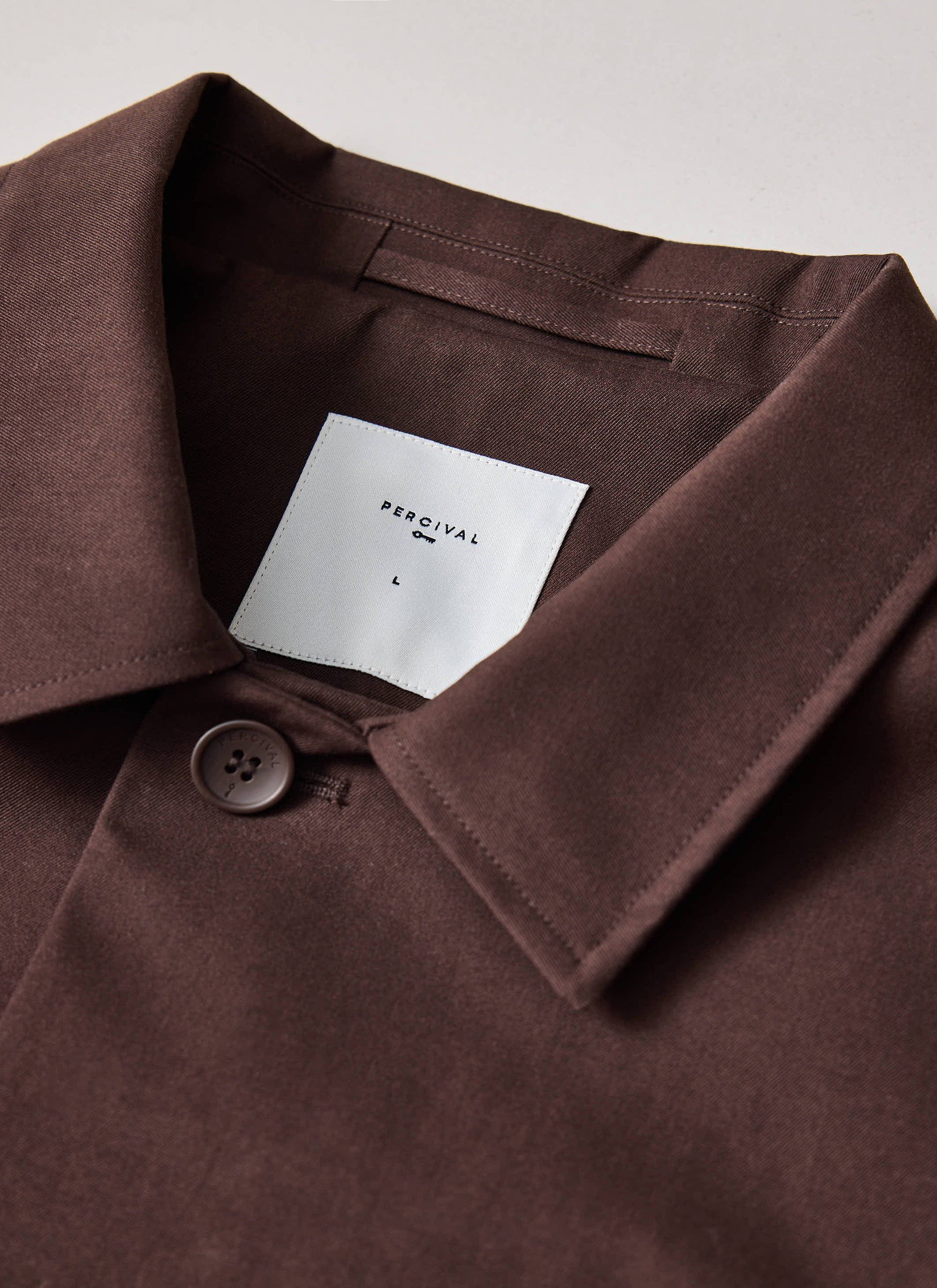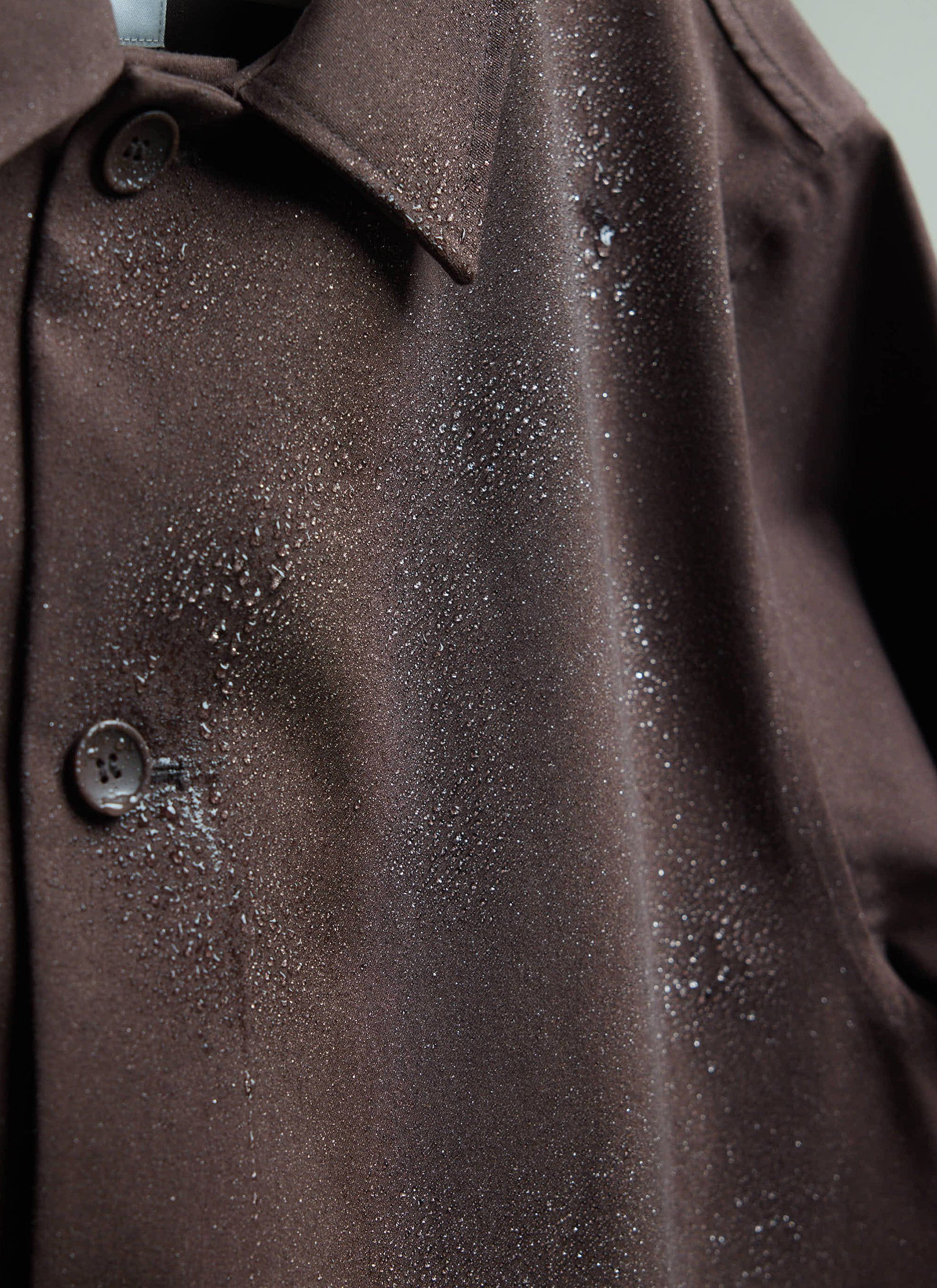 - Features: Men’s short trench coat in brown made from a 10,000mm waterproof technical fabric with 2000g/sqm breathability. Constructed with taped seams, contrast bonded PU lining, a large internal pocket that fits a MacBook, and two welt pockets. Designed with button fastening in a relaxed yet structured fit that is suitable for layering. A brown waterproof trench coat that combines classic styling with practical performance for daily wear and commuting.