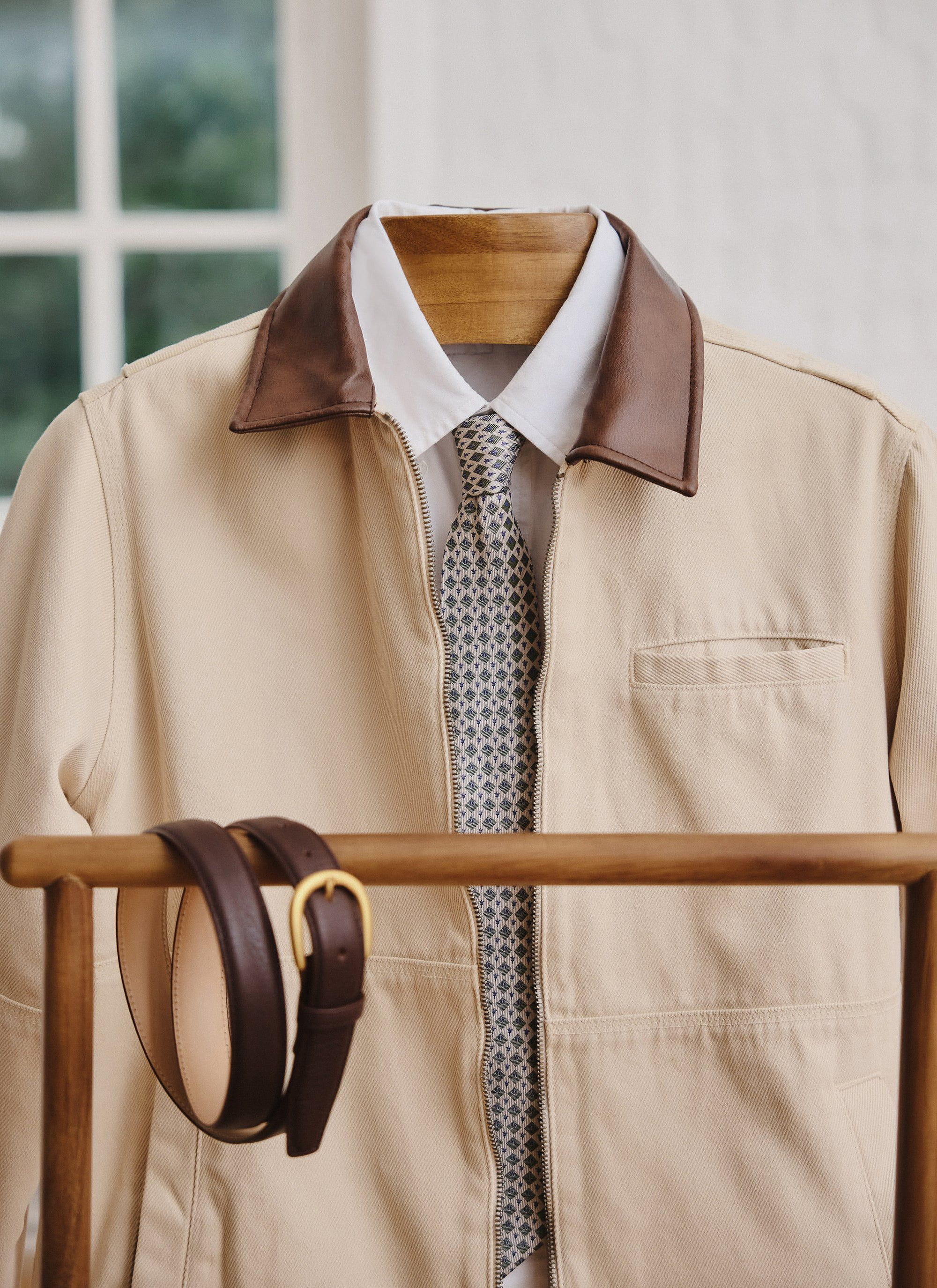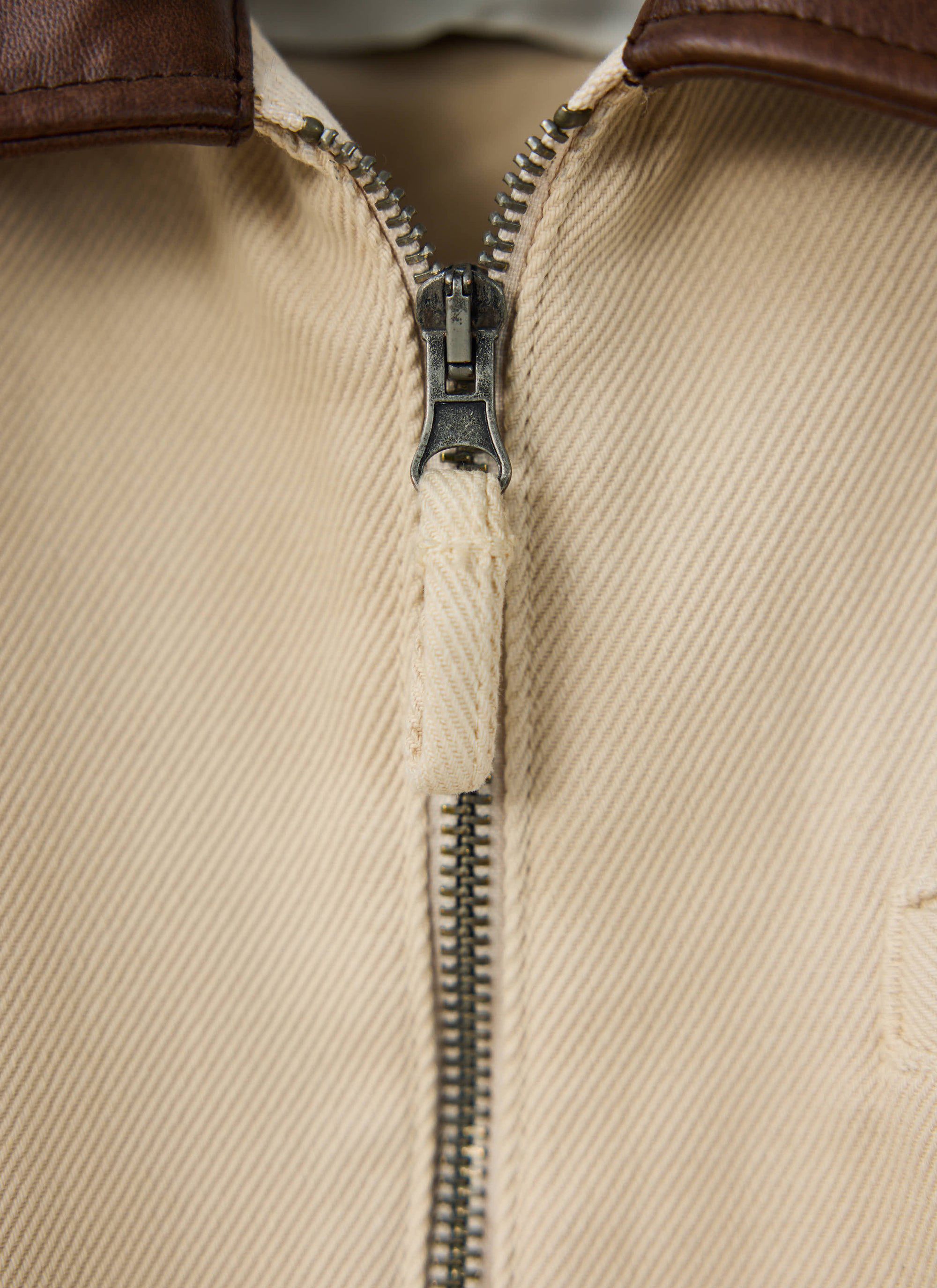 Action back detail, made from a heavy quality cotton twill, overdyed ecru, leather look collar. It’s a lot of jacket, honestly, for a fair price. Part of our new season but for almost any season.
