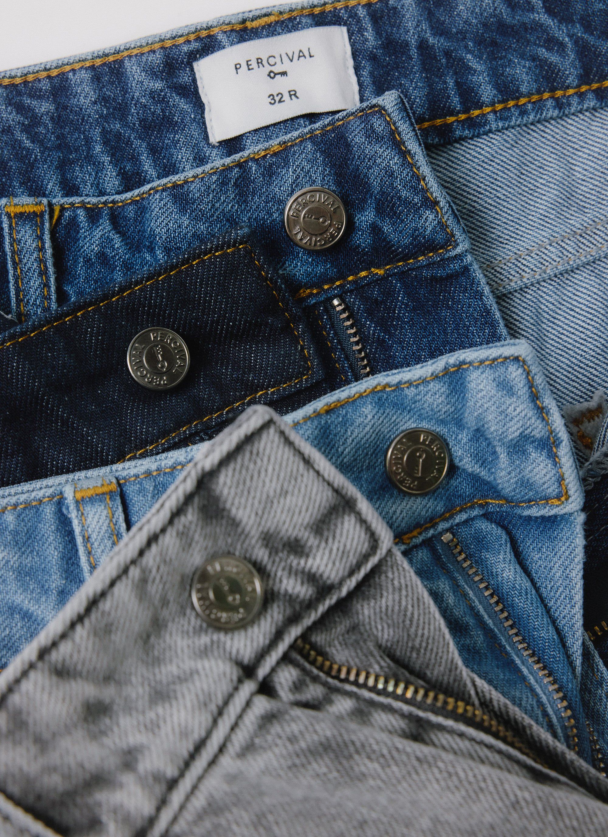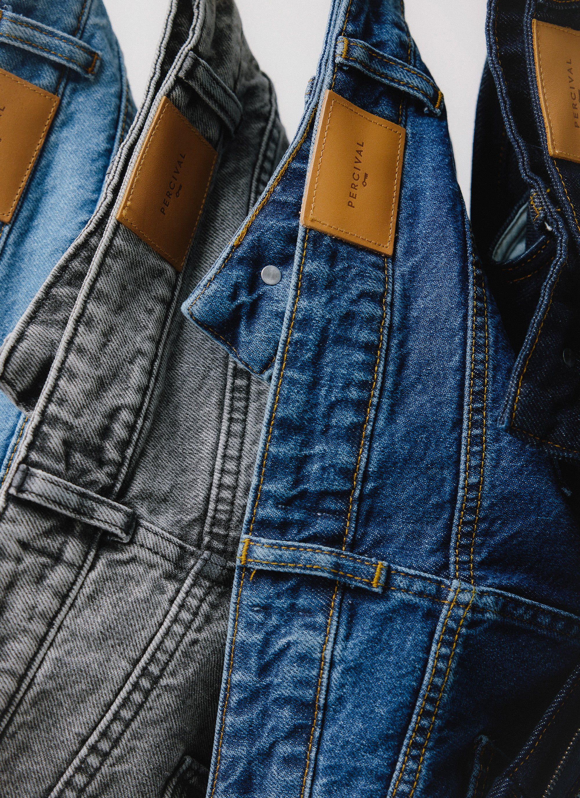 Percival denim is sourced from certified producers. Made from organic cotton, grown without the use of synthetic pesticides and regenerative cotton, which preserves soil health and biodiversity. The denim mill recycles treated water and also collects and reuse pre and post consumer yarns in production.