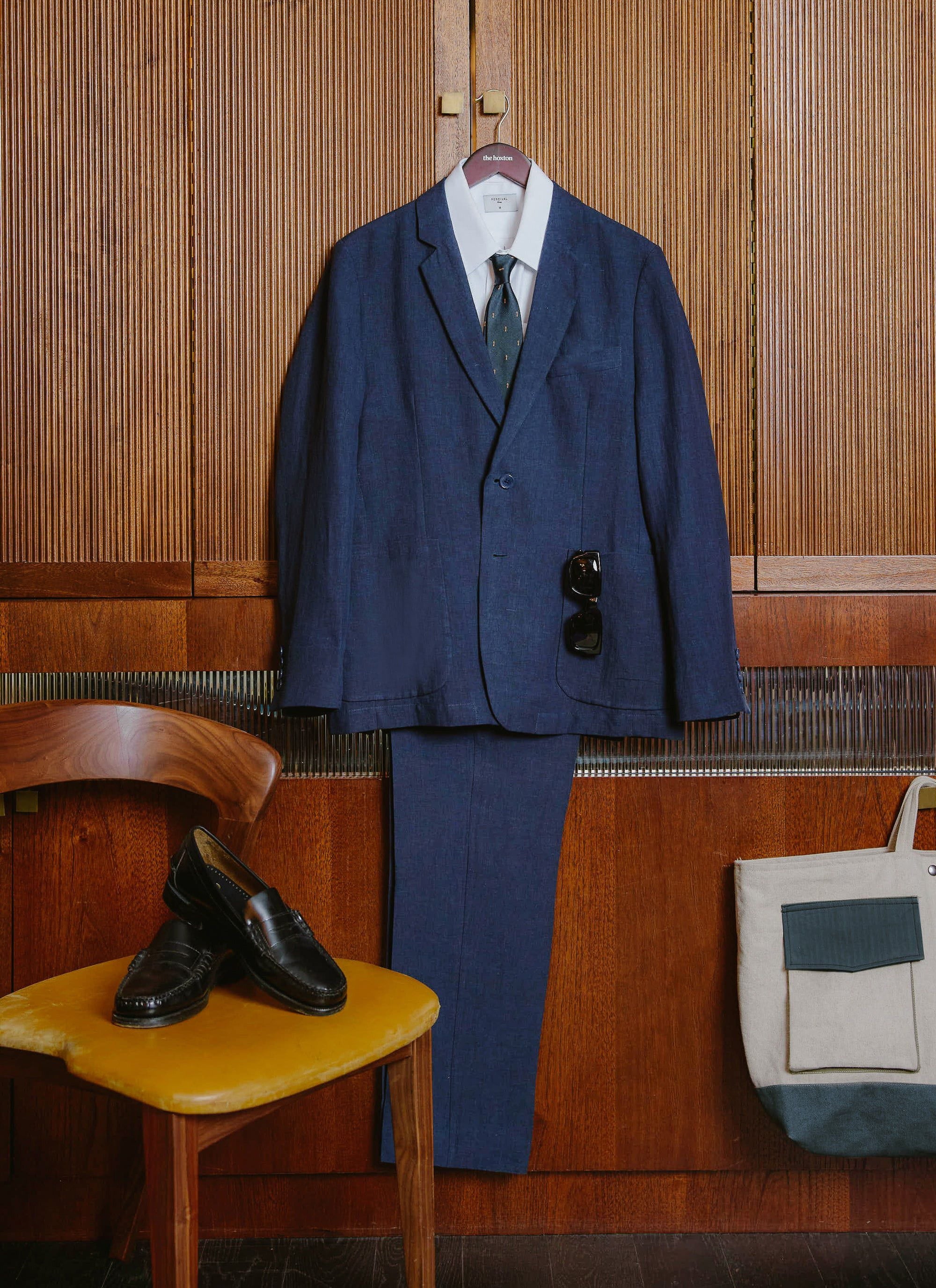 Blazer, the term first appeared in 1952, in an article that referred to a red jacket in a bright, or a 'blazing' red colour. Percival Tailored Linen Blazers then, blazing. Maybe not in red. A blazer or suit, dressing up for getting down, adapt a persona, whatever you do, you do you.